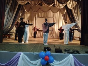 В Ермаковской детской школе искусств продолжаются открытые занятия хореографической лаборатории с учащимися 11 –х классов СШ № 1 в рамках краевой программы «Пушкинская карта», которые проводит преподаватель по классу хореографии Ермаковской ДШИ — Гречушкина Т.В. Для учащихся 11 класса важно, чтобы танец выглядел достойно, но не был слишком сложным. Основа — это классический вальс. Прежде чем начать учить движения, педагог определила с детьми «настроение» их вальса. Участники выбрали романтический стиль: нежный, с акцентом на взаимодействие пары. На занятии учащиеся выбрали основные элементы: движение по квадрату (раз-два-три), отработали его до автоматизма, затем вальсовый поворот на месте и в движении по линии танца. Красивый вальс — это не только вращение на месте, но и перемещение по залу. Педагог научила детей проходам по залу, по диагонали, по кругу и в разные стороны. Затем отработали работу в парах: кавалеры стоят спиной к центру (держат дам за талию), дамы лицом к центру (руки на плечах кавалеров). После чего все вместе идут по кругу вальсовым шагом, чтобы получилась красивая «карусель». В заключении все пары замирают в красивой позе: девушка полулежит на руке у юноши и оба смотрят вдаль.