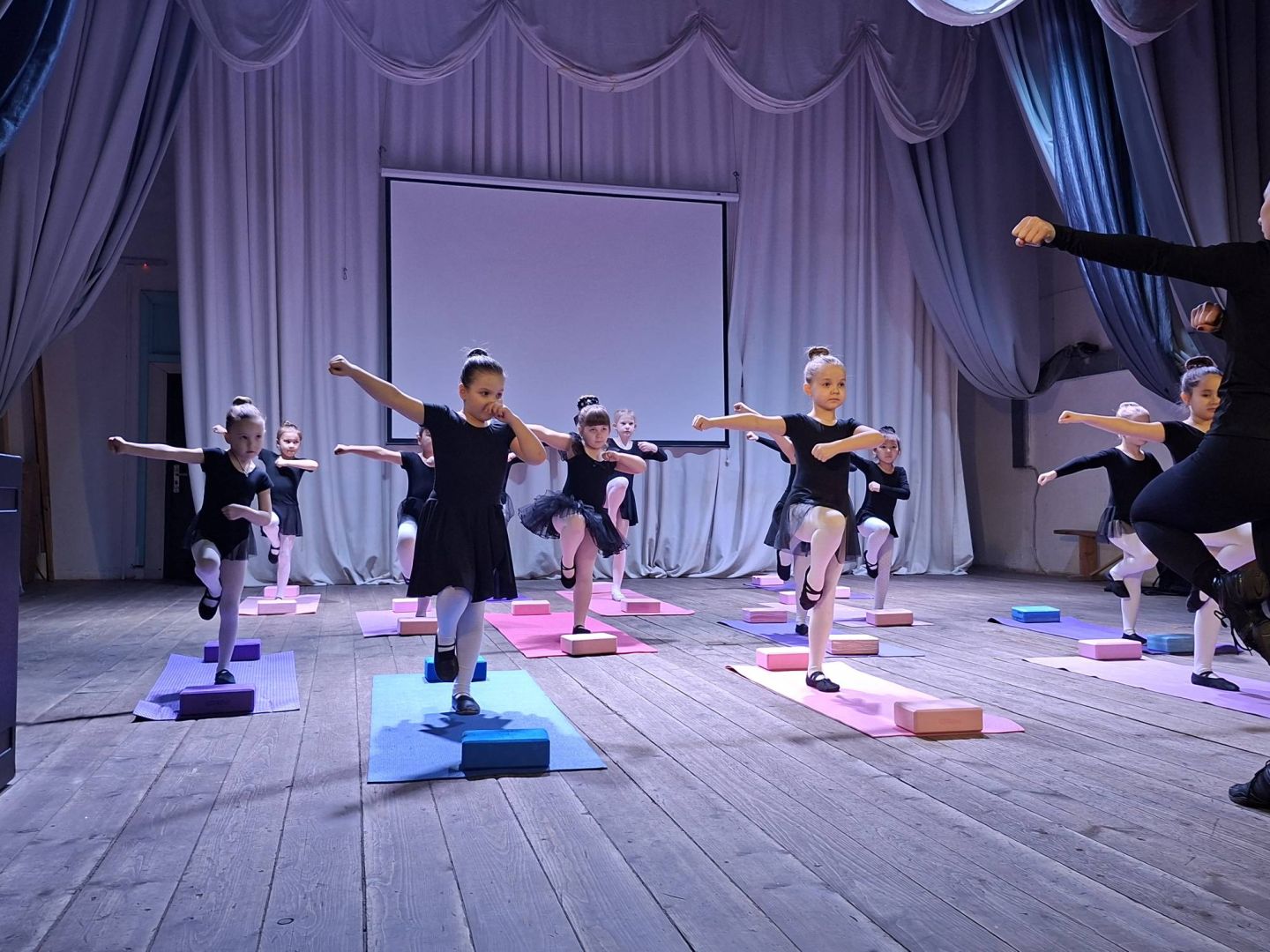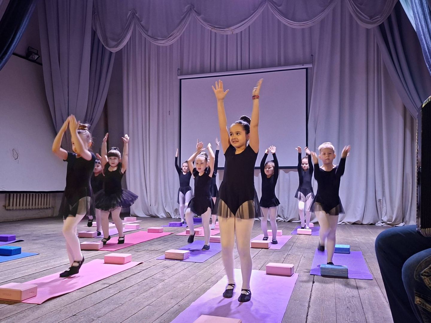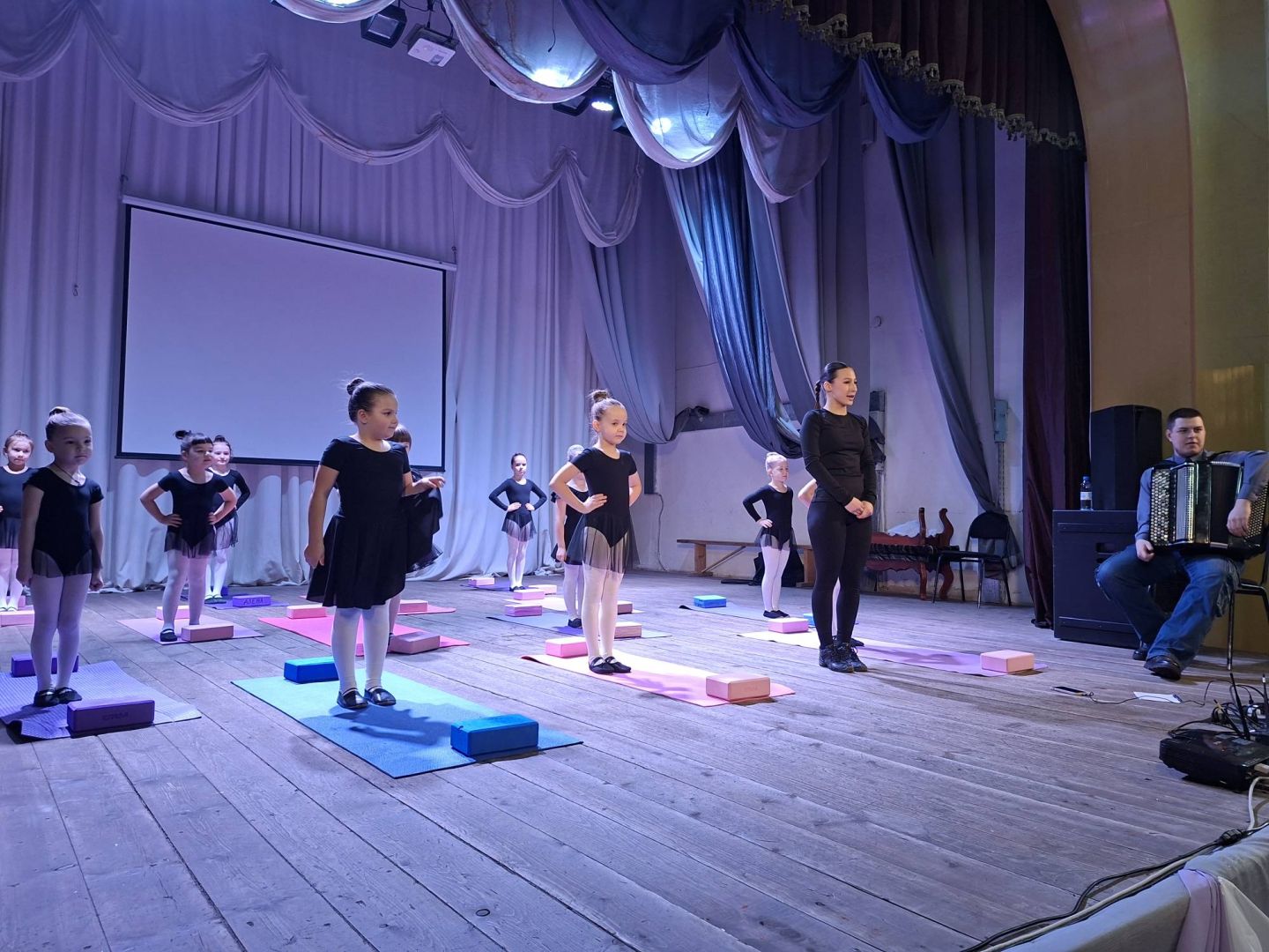 В Ермаковской детской школе искусств ярко и зрелищно прошел открытый урок по хореографии на развитие чувства ритма и музыкального слуха через игровые хореографические задания. Урок продемонстрировал не только технику исполнения, но и глубину понимания музыки детьми. Подготовила и провела занятие с учащимися первого года обучения, преподаватель Авдеева Елена Андреевна. На уроке преподаватель познакомила детей с понятиями «ритм», «темп», «пауза», научила детей слышать и передавать в движении ритмический рисунок, темп, динамику и характер музыки. Занятие состояло из 3 – х блоков. Блок 1: «Слушаем и хлопаем» (на развитие слуха) Блок 2: «Топаем и творим» (на развитие ритма) Блок 3. «Слушаем ногами» (работа с ритмом). На уроке была решена главная задача: умение работать в коллективе, слушать друг друга и музыку. Своим родителям, которые присутствовали на открытом мероприятии, дети показали, как музыка «оживает» в движении, и как они становятся соавторами танца. Урок стал для детей ярким и радостным событием! Дети уходили с ощущением праздника, с базовым пониманием, что музыка бывает разной и под нее можно красиво двигаться, повторяя ее ритм своим телом.